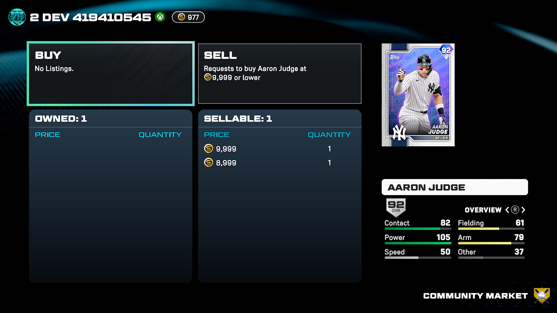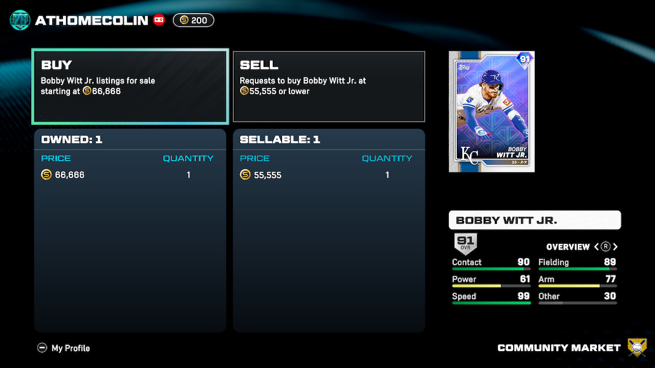 オンラインのCommunity Marketplaceは、The Show のデジタル取引市場です。希望する価格で購入・売却注文を出すことも、Buy Now/Sell Now を利用して現在の市場価格で即時取引することも可能です。