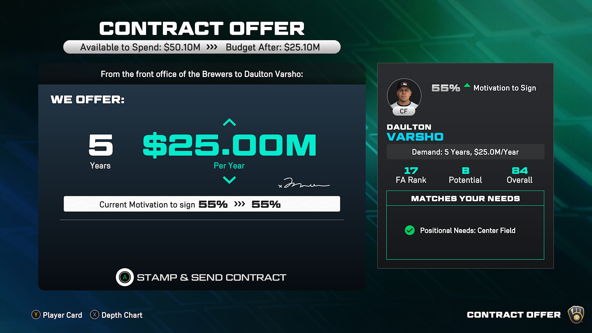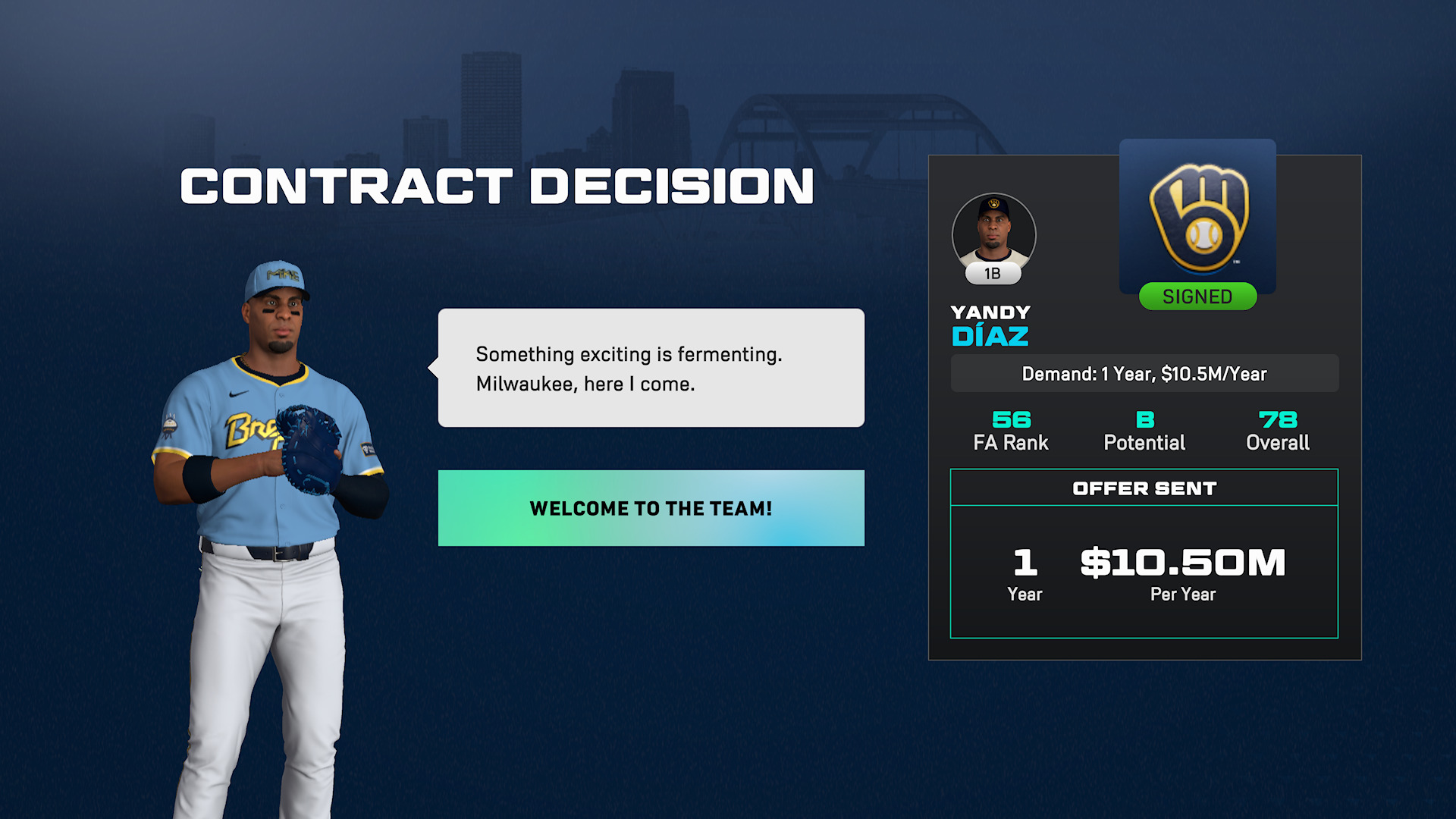 MLB® The Show™ 26 のフロントオフィス体験は、戦略性と没入感を高めたFAシステムを搭載しています。リスクとリターンの要素が組み込まれ、毎オフシーズンの有力フリーエージェント獲得に向けた駆け引きが、より緊張感のあるものになりました。奥深い仕組みを備えながらも、操作は分かりやすく整理されています。選択は結果に直結し、時間も限られています。だからこそ、フリーエージェント獲得の判断は慎重に行いましょう。