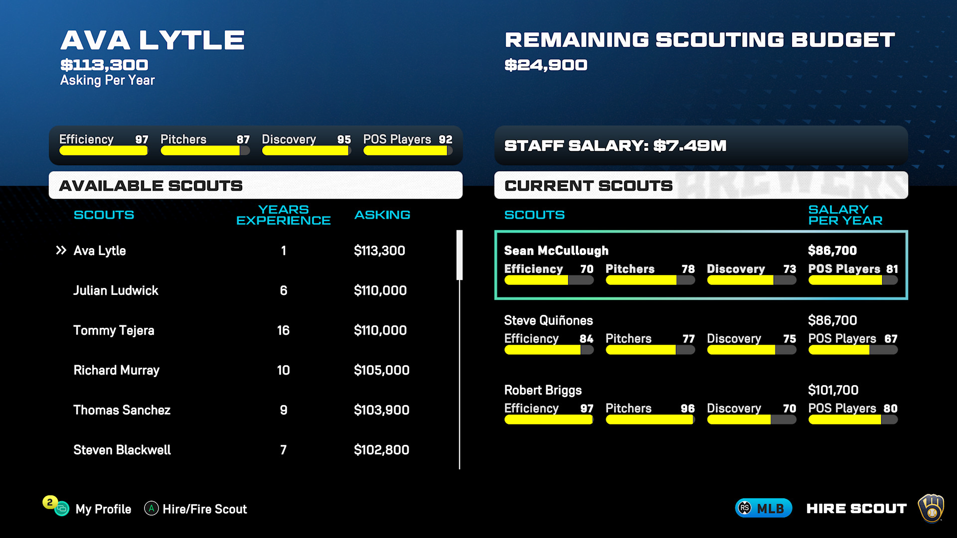 MLB® The Show™ 26 の強化された Scout & Draft システムには、理想のフランチャイズを構築するために必要な操作がすべて揃っています。まずはスカウトの採用から始まります。それぞれのスカウトは異なる能力を持ち、優秀な人材ほど高い報酬が必要になります。重要なのは、互いの弱点を補い合えるバランスの取れた体制を整え、ドラフトに向けて将来有望な選手を見出すことです。