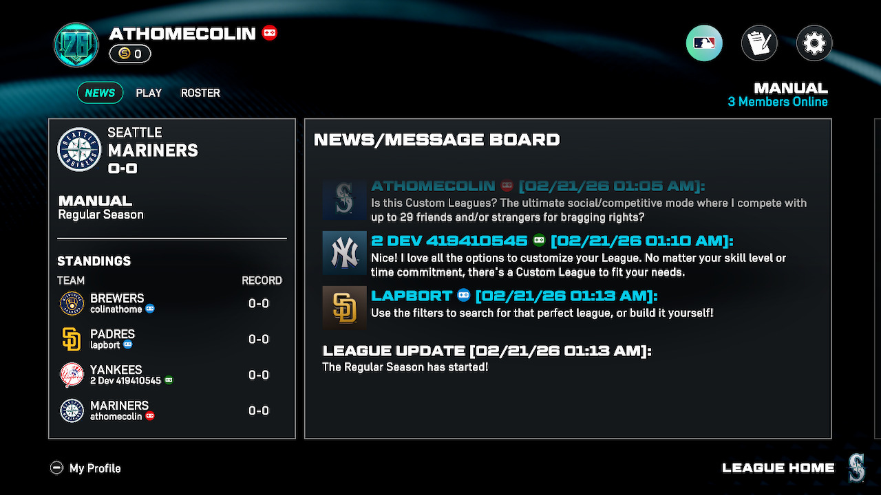Custom Leagues では、ルールや設定を自由にカスタマイズし、柔軟なシーズン形式でプレイできます。フレンドと競い合う本格的な対戦から、リラックスした試合まで、好みに合わせて楽しめます。